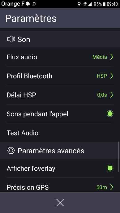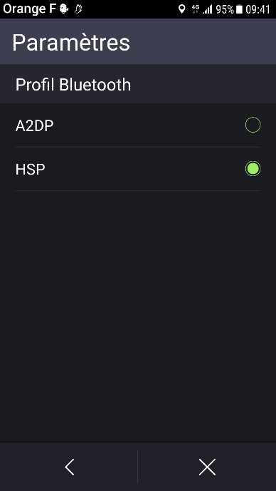 Si vous utilisez un téléphone Android, rendez-vous dans le menu Paramètres de l’application, rubrique Son puis cliquez sur le menu Profil Bluetooth pour sélectionner votre profil Bluetooth (A2DP ou HSP).